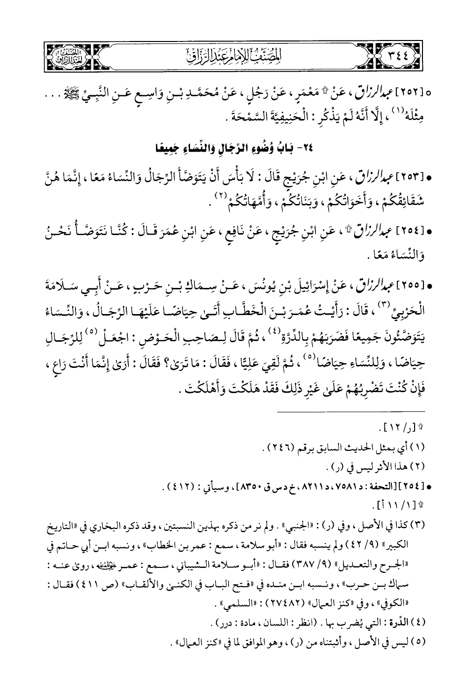 • [٢٥٣] عَبْدُ الرَّزَّاقِ، عَنِ ابْنِ جُرَيْجٍ قَالَ: لَا بَأْسَ أَنْ يَتَوَضَّأَ الرِّجَالُ وَالنِّسَاءُ مَعًا، إِنَّمَا هُنَّ شَقَائِقُكُمْ، وَأَخَوَاتُكُمْ، وَبَنَاتُكُمْ، وَأُمَّهَاتُكُمْ (¬٢).