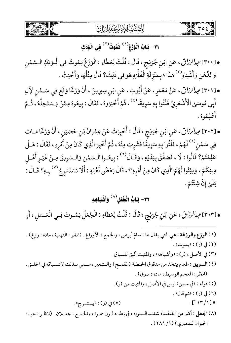 • [٣٠٣] عبد الرزاق، عَنِ ابْنِ جُرَيْجٍ، قَالَ: قُلْتُ لِعَطَاءٍ: الْجُعَلُ يَمُوتُ فِي الْعَسَلِ، أَوِ