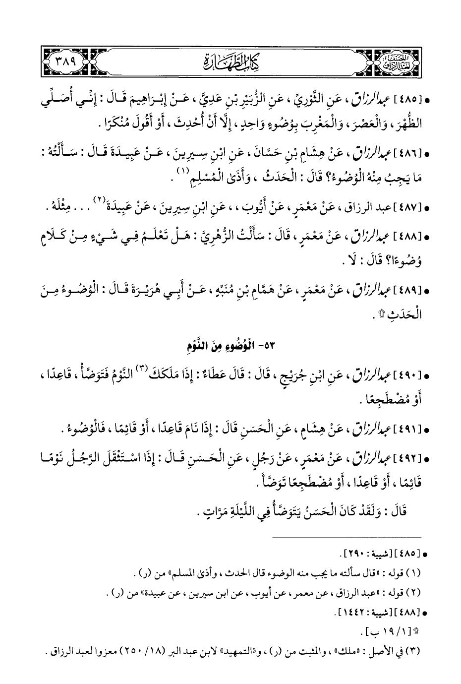 • [٤٨٦] عبد الرزاق، عَنْ هِشَامِ بْنِ حَسَّانَ، عَنِ ابْنِ سِيرِينَ، عَنْ عَبِيدَةَ قَالَ: سَأَلْتُهُ: مَا يَجِبُ مِنْهُ الْوُضُوءُ؟ قَالَ: الْحَدَثُ، وَأَذَى الْمُسْلِمِ (¬١).