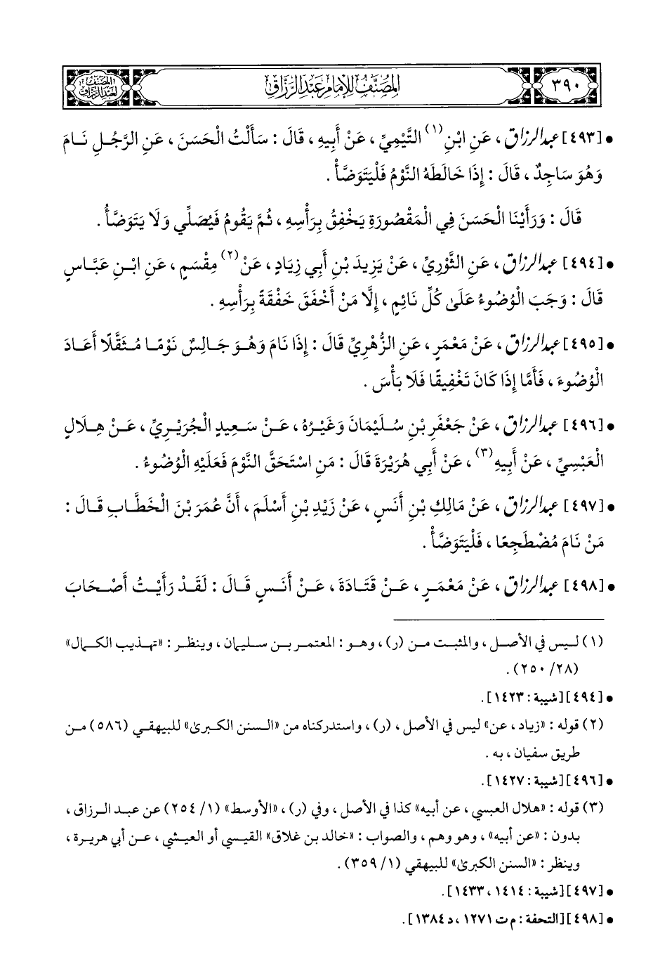• [٤٩٦] عبد الرزاق، عَنْ جَعْفَرِ بْنِ سُلَيْمَانَ وَغَيْرُهُ، عَنْ سَعِيدٍ الْجُرَيْرِيِّ، عَنْ هِلَالٍ الْعَبْسِيِّ، عَنْ أَبِيهِ (¬٣)، عَنْ أَبِي هُرَيْرَةَ قَالَ: مَنِ اسْتَحَقَّ النَّوْمَ فَعَلَيْهِ الْوُضُوءُ.
