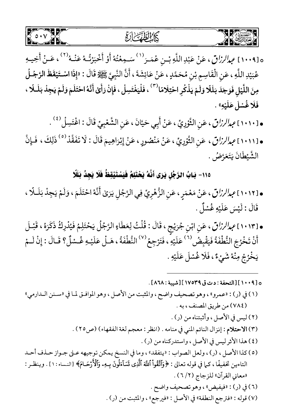 • [١٠١١] عبد الرزاق، عَنِ الثَّوْريِّ، عَنْ مَنْصُورٍ، عَنْ إِبْرَاهِيمَ قَالَ: لَا تَفَقَّدْ (¬٥) ذَلِكَ، فَإِنَّ الشَّيْطَانَ يَتَعَرَّضُ.