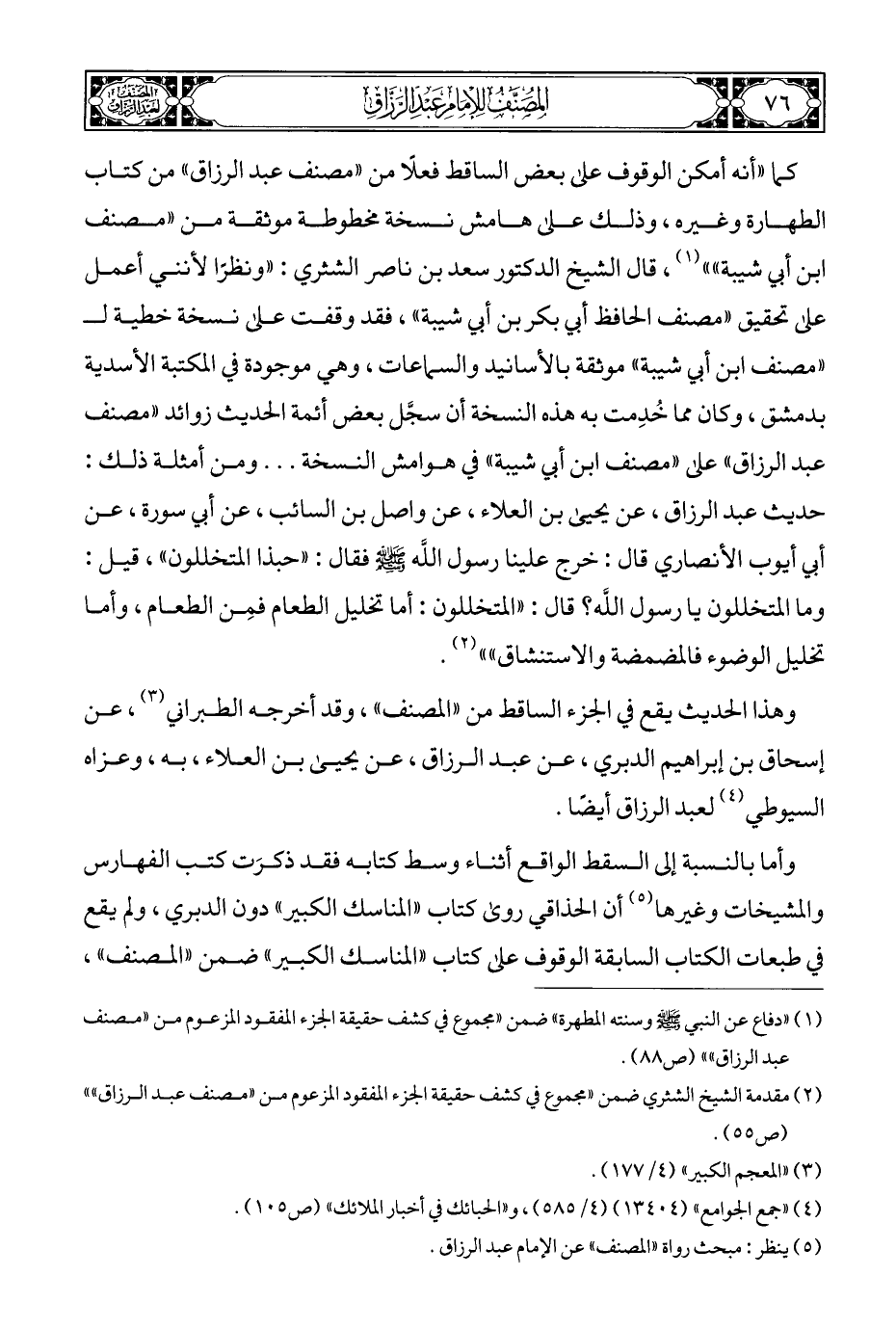 (¬٢) مقدمة الشيخ الشثري ضمن "مجموع في كشف حقيقة الجزء المفقود المزعوم من "مصنف عبد الرزاق"" (ص ٥٥).