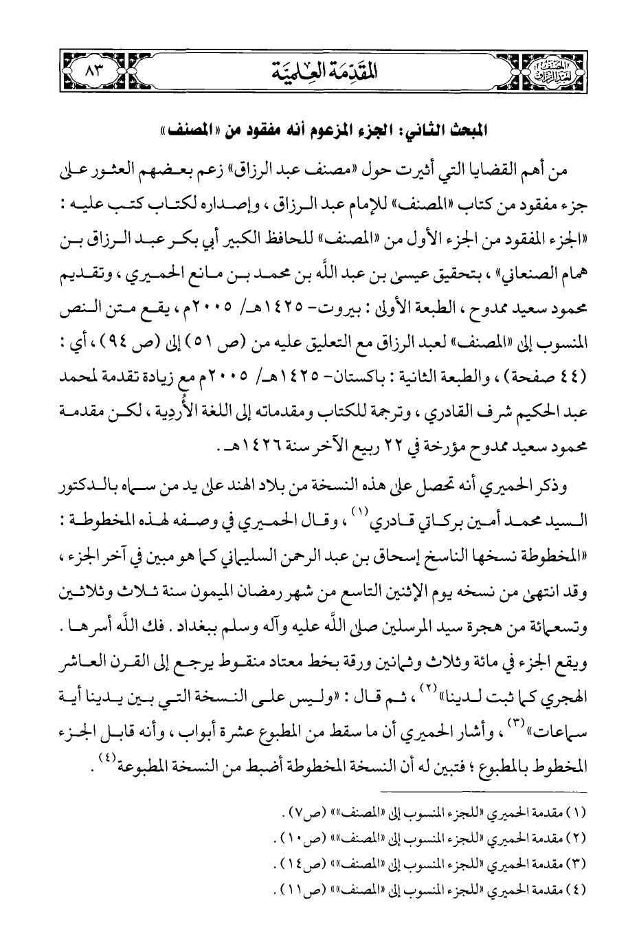 المبحث الثاني: الجزء المزعوم أنه مفقود من "المصنف"