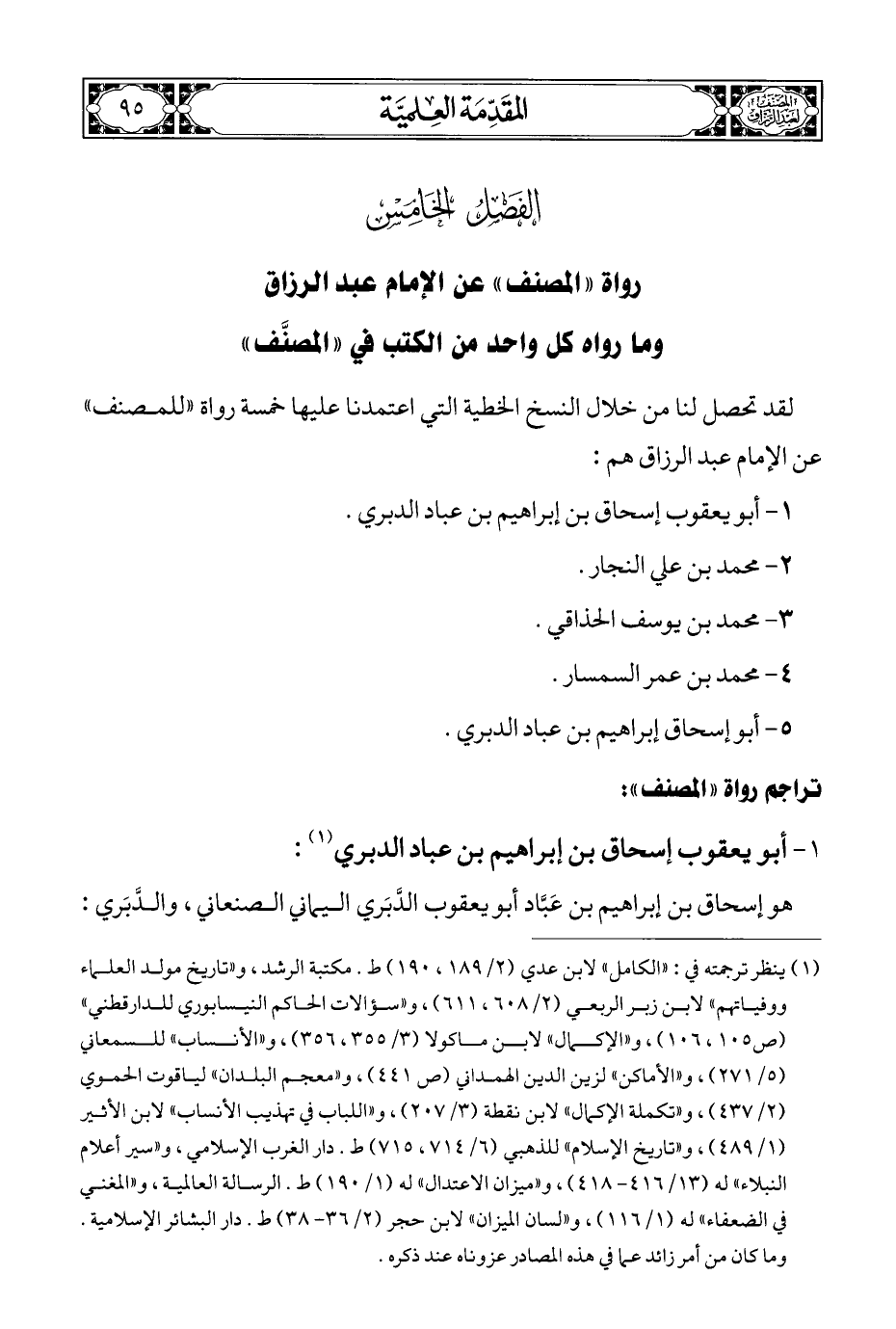 الفَصْلُ الخَامِس رواة "المصنف" عن الإمام عبد الرزاق وما رواه كل واحد من الكتب في "المصنَّف"