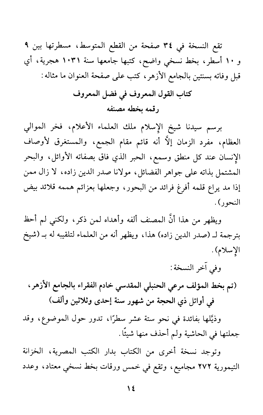 كتاب القول المعروف في فضل المعروف رقمه بخطه مصنفه