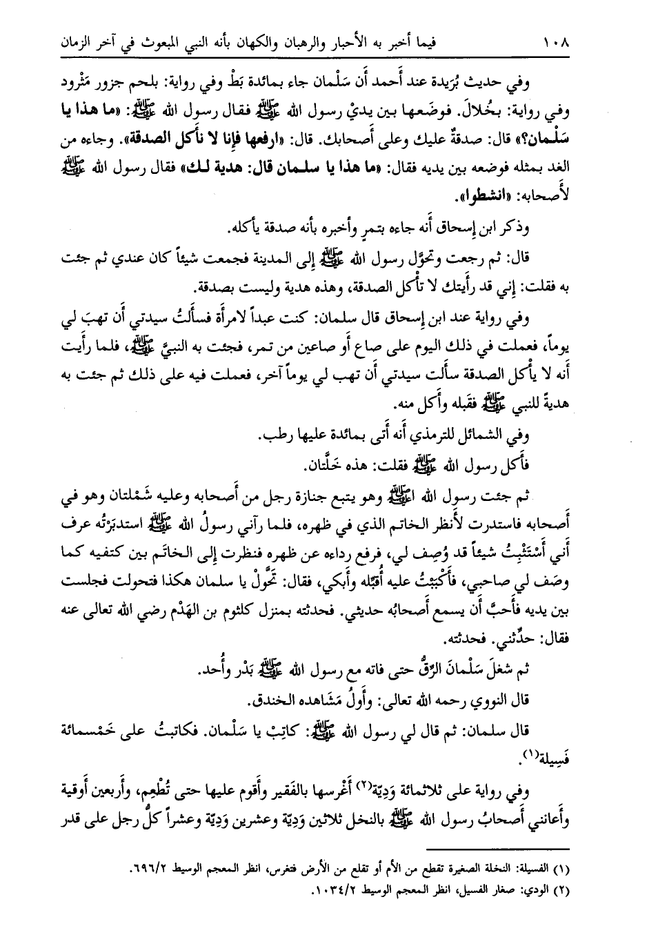 قال: ثم رجعت وتحوّل رسول الله صلى الله عليه وسلم إلى المدينة فجمعت شيئاً كان عندي ثم جئت به فقلت: إني قد رأيتك لا تأكل الصدقة، وهذه هدية وليست بصدقة.