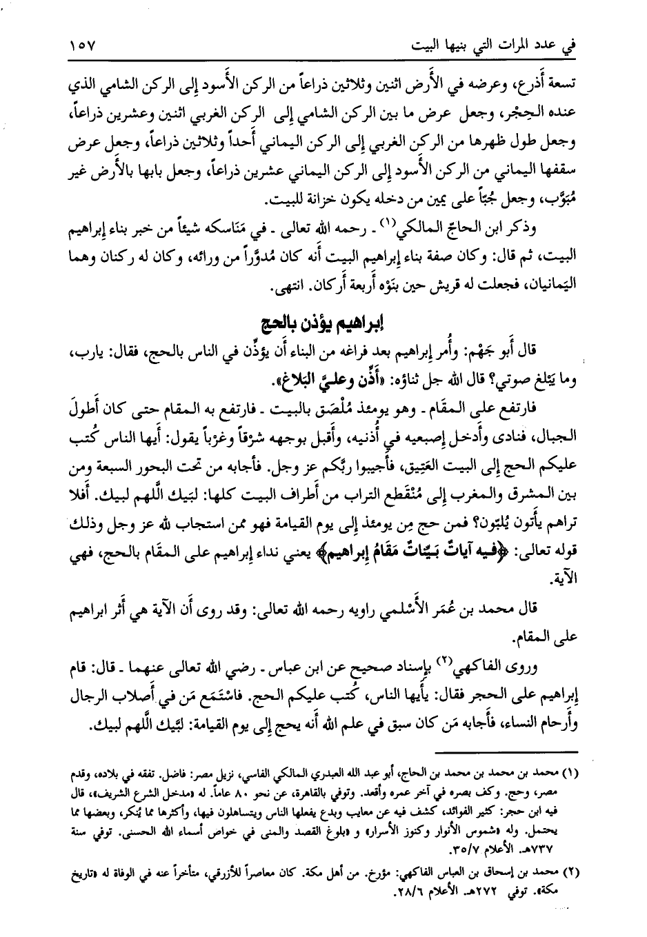 [ (2) ] محمد بن إسحاق بن العباس الفاكهي: مؤرخ. من أهل مكة. كان معاصرا للأزرقي، متأخرا عنه في الوفاة له «تاريخ مكة» . توفي 272 هـ. الأعلام 6/ 28.