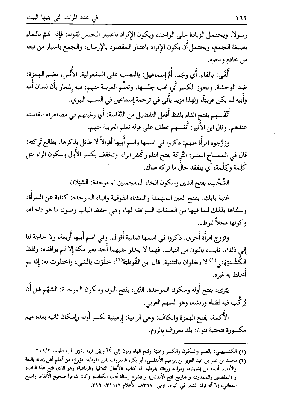 [ (2) ] محمد بن عمر بن عبد العزيز بن إبراهيم الأندلسي، أبو بكر، المعروف بابن القوطية: مؤرخ، من أعلم أهل زمانه باللغة والأدب. أصله من إشبيلية، ومولده ووفاته بقرطبة. له كتاب «الأفعال الثلاثية والرباعية» وهو الذي فتح هذا الباب، و «المقصور والممدود» و «تاريخ فتح الأندلس» و «شرح رسالة أدب الكتاب» وكان شاعرا صحيح الألفاظ واضح المعاني، إلا أنه ترك الشعر في كبره. توفي 367 هـ. الأعلام 6/ 311، 312.