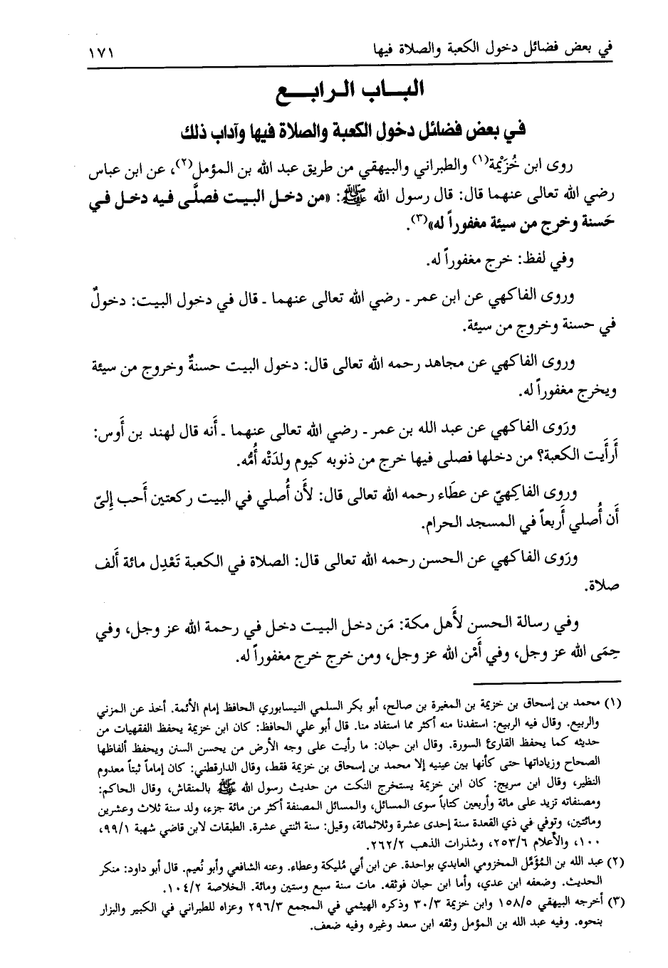 الباب الرابع في بعض فضائل دخول الكعبة والصلاة فيها وآداب ذلك