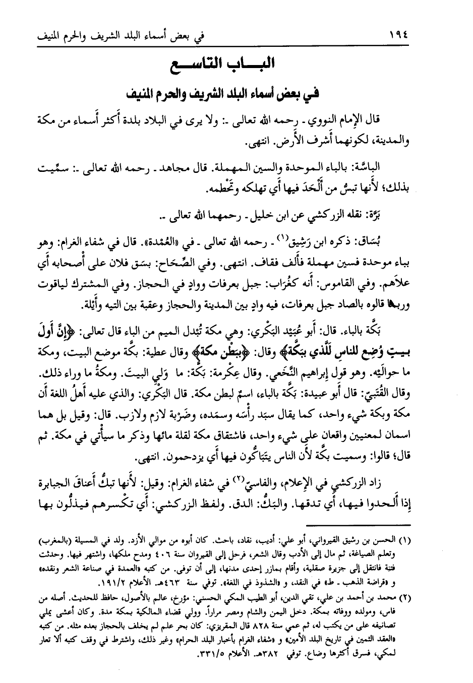 الباب التاسع في بعض أسماء البلد الشريف والحرم المنيف