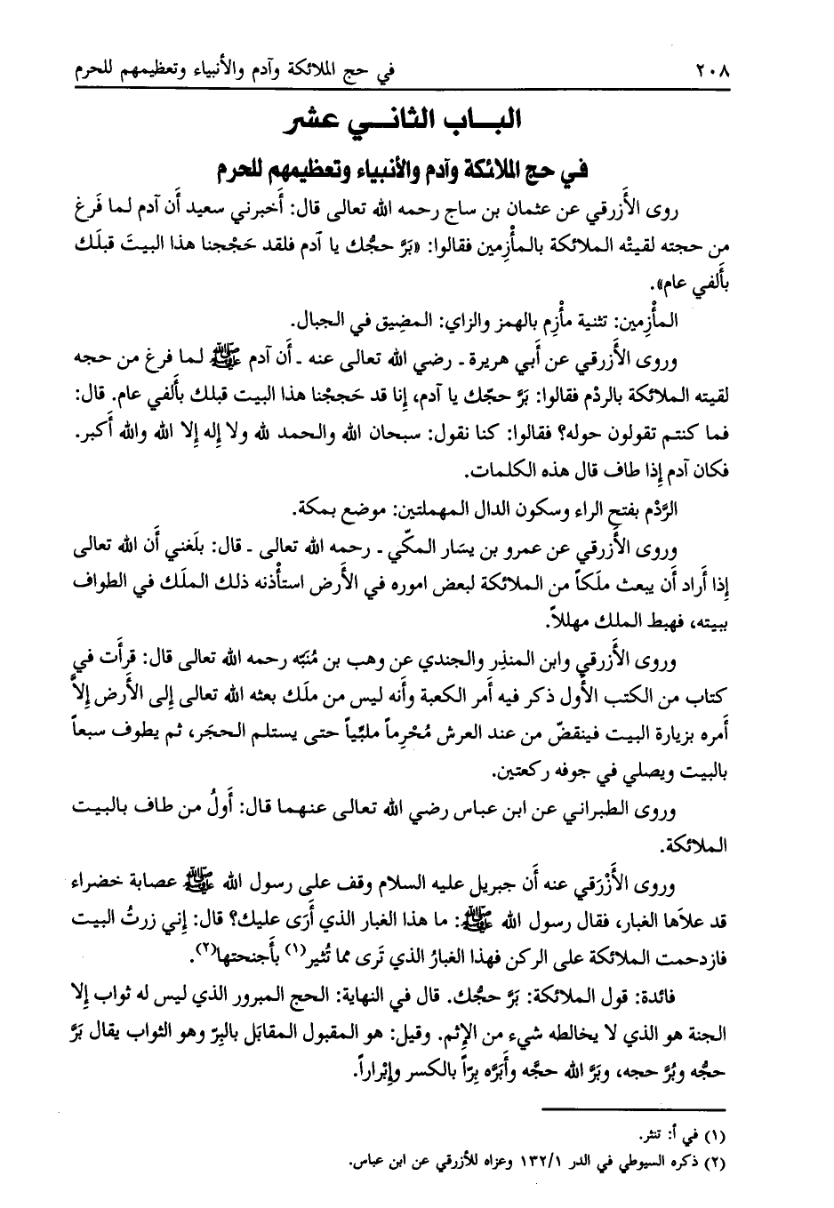 الباب الثاني عشر في حج الملائكة وآدم والأنبياء وتعظيمهم للحرم