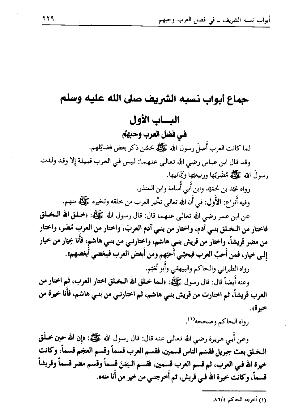 جماع أبواب نسبه الشريف صلى الله عليه وسلم