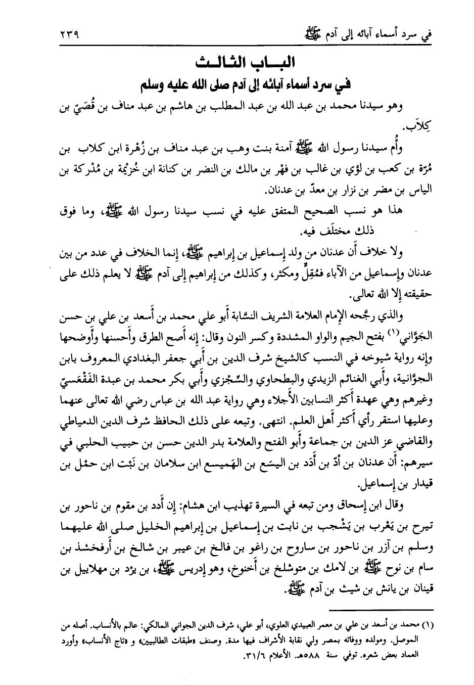 الباب الثالث في سرد أسماء آبائه إلى آدم صلى الله عليه وسلم