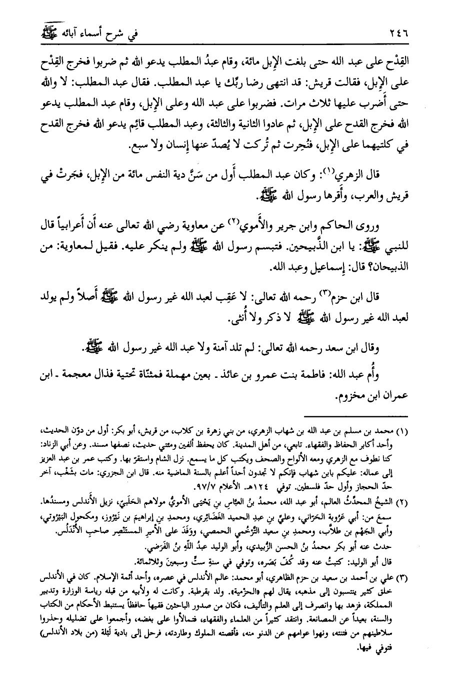 قال ابن حزم [ (3) ] رحمه الله تعالى: لا عقب لعبد الله غير رسول الله صلى الله عليه وسلّم أصلاً ولم يولد لعبد الله غير رسول الله صلى الله عليه وسلم لا ذكر ولا أنثى.