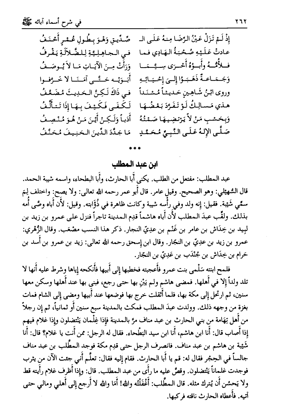 ابن عبد المطلب عبد المطلب: مفتعل من الطلب. يكنى أبا الحارث، وأبا البطحاء، واسمه شيبة الحمد.