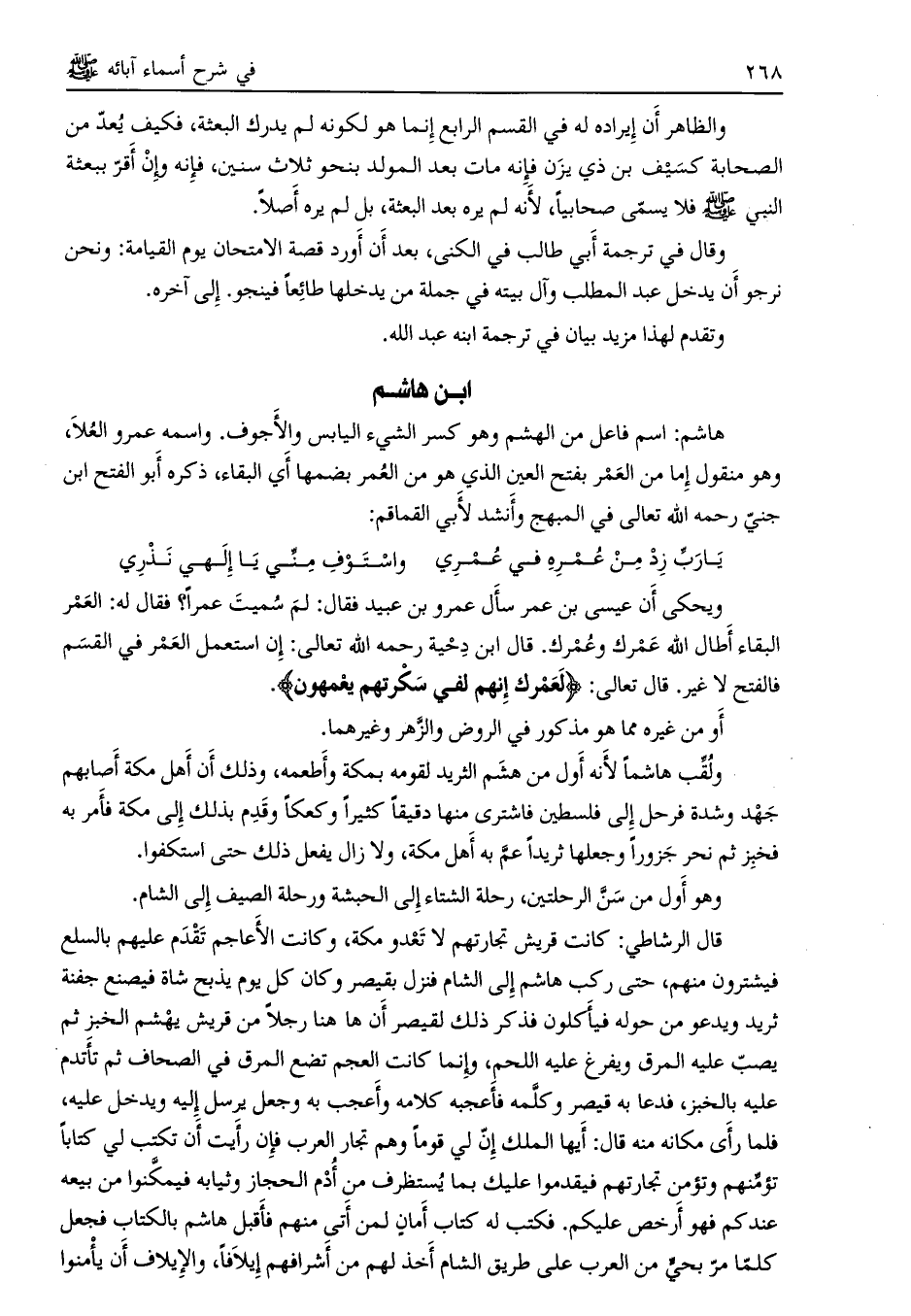ابن هاشم هاشم: اسم فاعل من الهشم وهو كسر الشيء اليابس والأجوف. واسمه عمرو العلا، وهو منقول إما من العمر بفتح العين الذي هو من العمر بضمها أي البقاء، ذكره أبو الفتح ابن جنيّ رحمه الله تعالى في المبهج وأنشد لأبي القماقم: