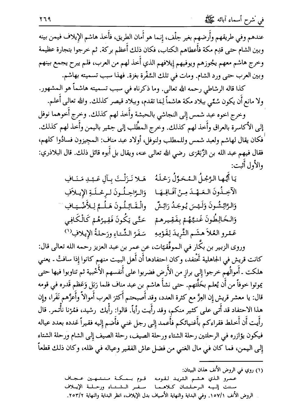 الروض الأنف 1/ 157. وفي البداية والنهاية الأصياف بدل الإيلاف، انظر البداية والنهاية 2/ 253.