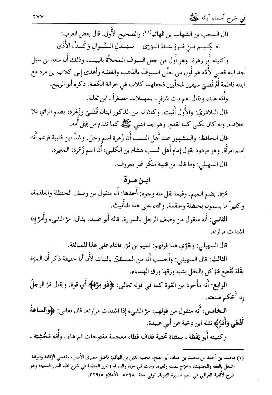 ابن مرة مرة. بضم الميم. وفيما نقل منه وجوه: أحدها: أنه منقول من وصف الحنظلة والعلقمة، وكثيراً ما يسمون بحنظلة وعلقمة. والتاء على هذا للتأنيث.