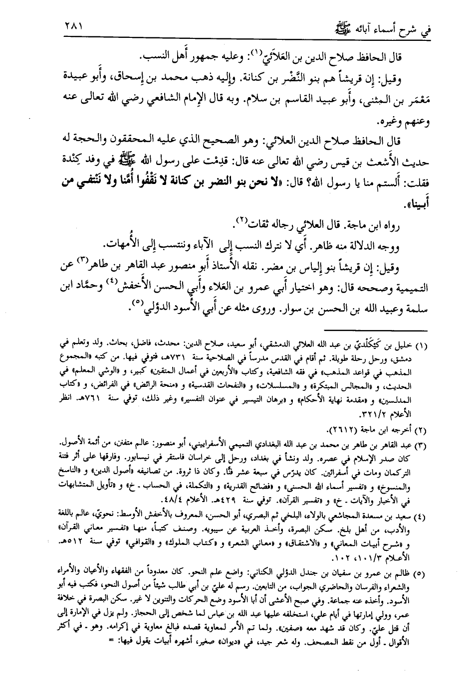 قال الحافظ صلاح الدين بن العلائيّ [ (1) ] : وعليه جمهور أهل النسب.