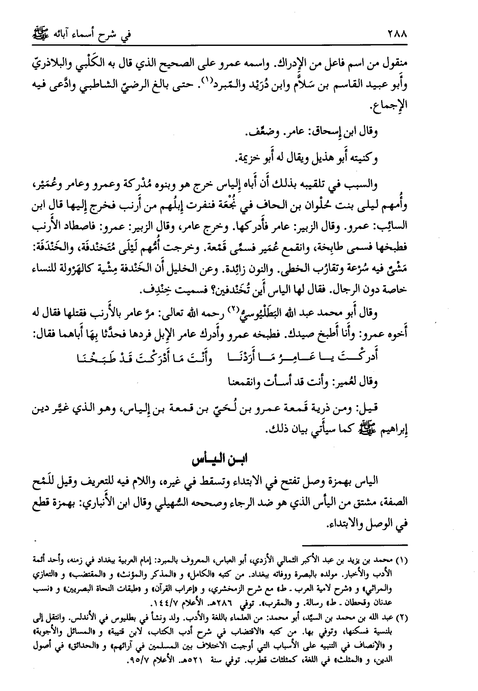 [ (1) ] محمد بن يزيد بن عبد الأكبر الثمالي الأزدي، أبو العباس، المعروف بالمبرد: إمام العربية ببغداد في زمنه، وأحد أئمة الأدب والأخبار. مولده بالبصرة ووفاته ببغداد. من كتبه «الكامل» و «المذكر والمؤنث» و «المقتضب» و «التعازي والمراثي» و «شرح لامية العرب- ط» مع شرح الزمخشري، و «إعراب القرآن» و «طبقات النحاة البصريين» و «نسب عدنان وقحطان- ط» رسالة. و «المقرب» . توفي 286 هـ. الأعلام 7/ 144.