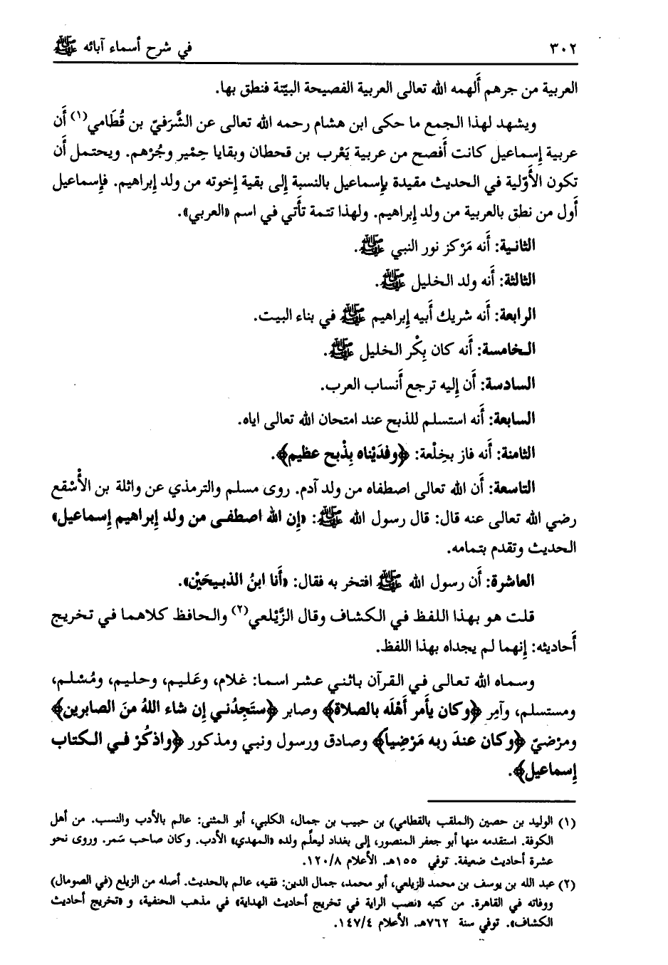 الثالثة: أنه ولد الخليل صلى الله عليه وسلم.