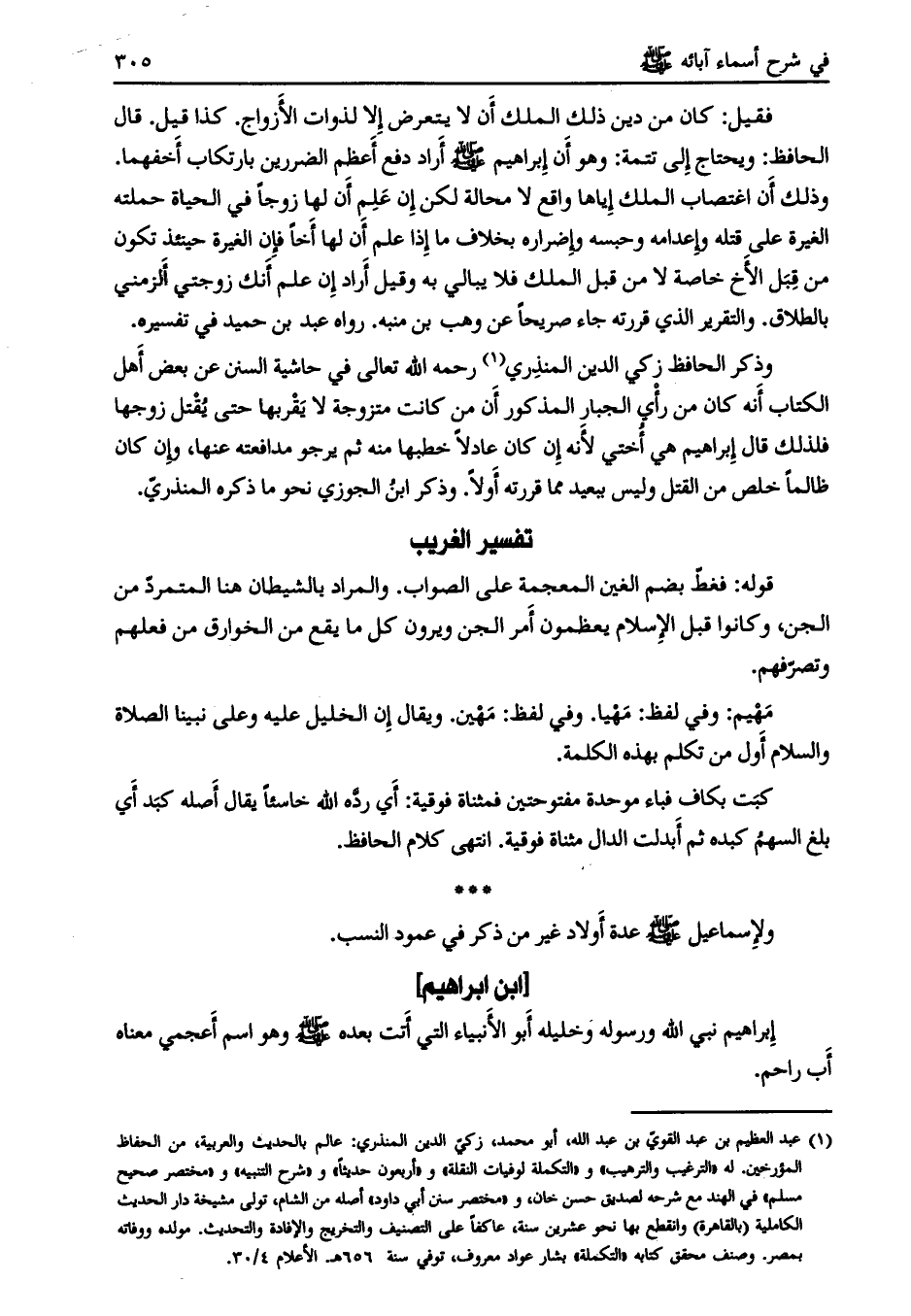 [ابن إبراهيم] إبراهيم نبي الله ورسوله وخليله أبو الأنبياء التي أتت بعده صلّى الله عليه وسلم وهو اسم أعجمي معناه أب راحم.