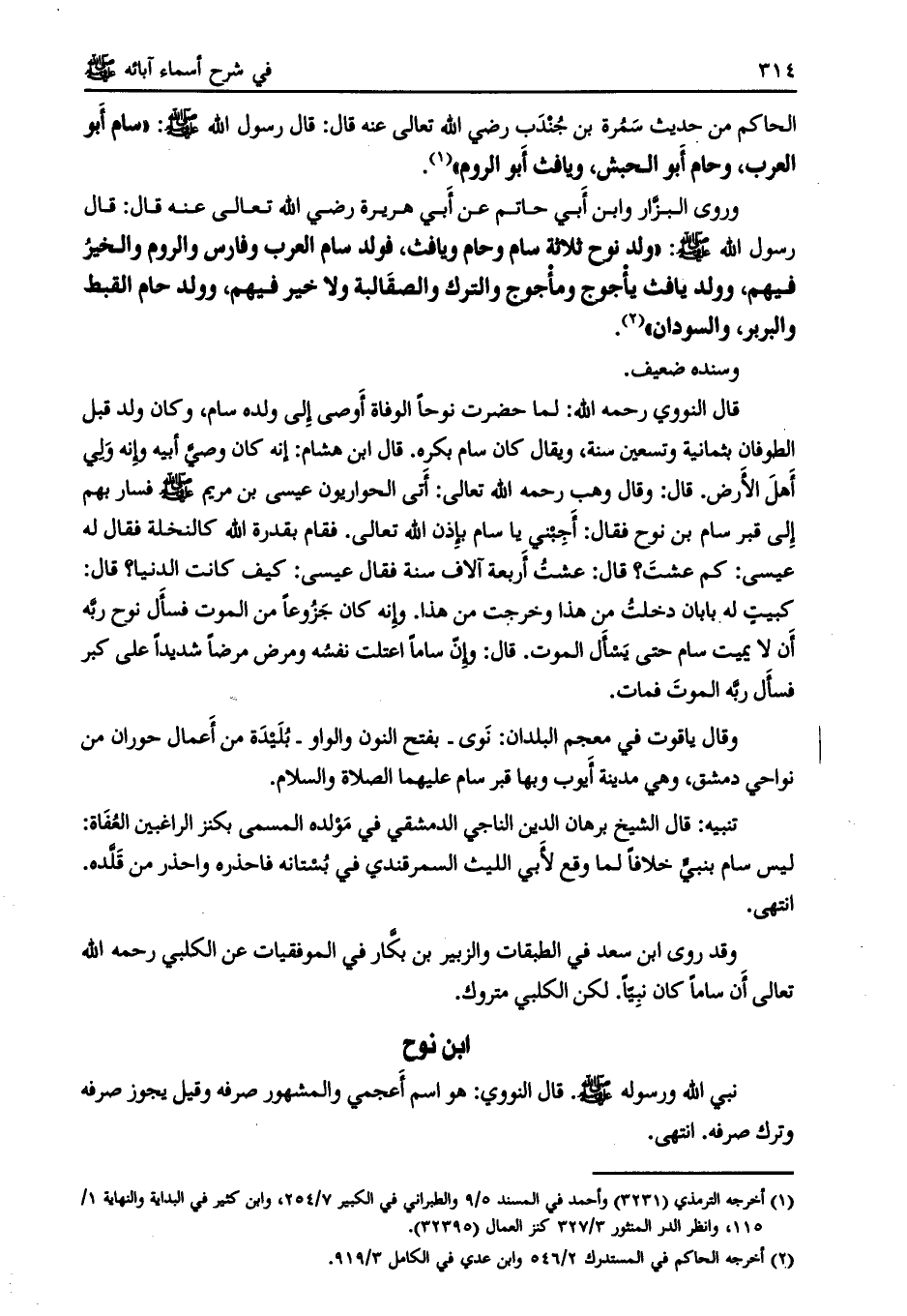 ابن نوح نبي الله ورسوله صلى الله عليه وسلم. قال النووي: هو اسم أعجمي والمشهور صرفه وقيل يجوز صرفه وترك صرفه. انتهى.