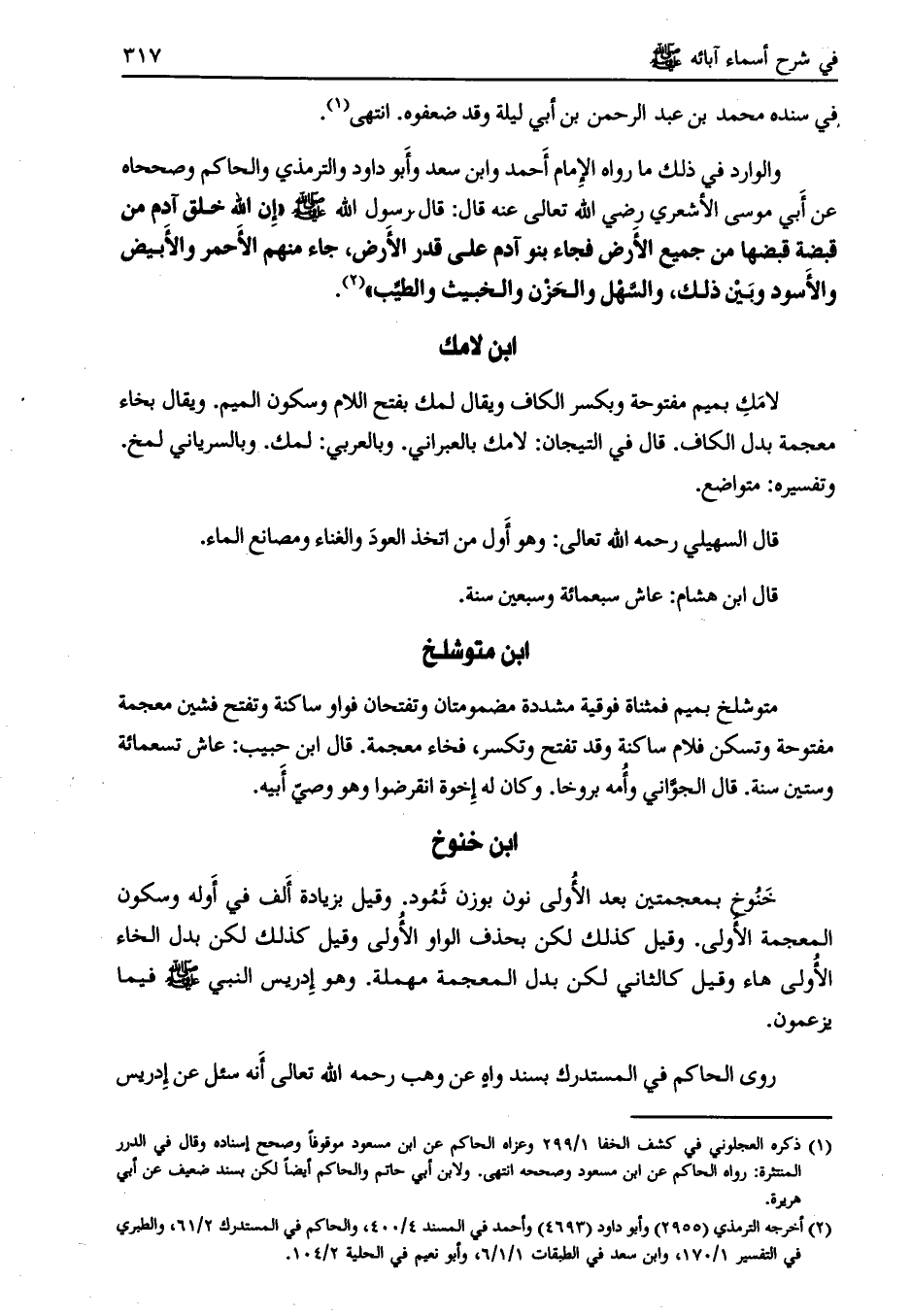 ابن خنوخ خنوخ بمعجمتين بعد الأولى نون بوزن ثمود. وقيل بزيادة ألف في أوله وسكون المعجمة الأولى. وقيل كذلك لكن بحذف الواو الأولى وقيل كذلك لكن بدل الخاء الأولى هاء وقيل كالثاني لكن بدل المعجمة مهملة. وهو إدريس النبي صلى الله عليه وسلم فيما يزعمون.