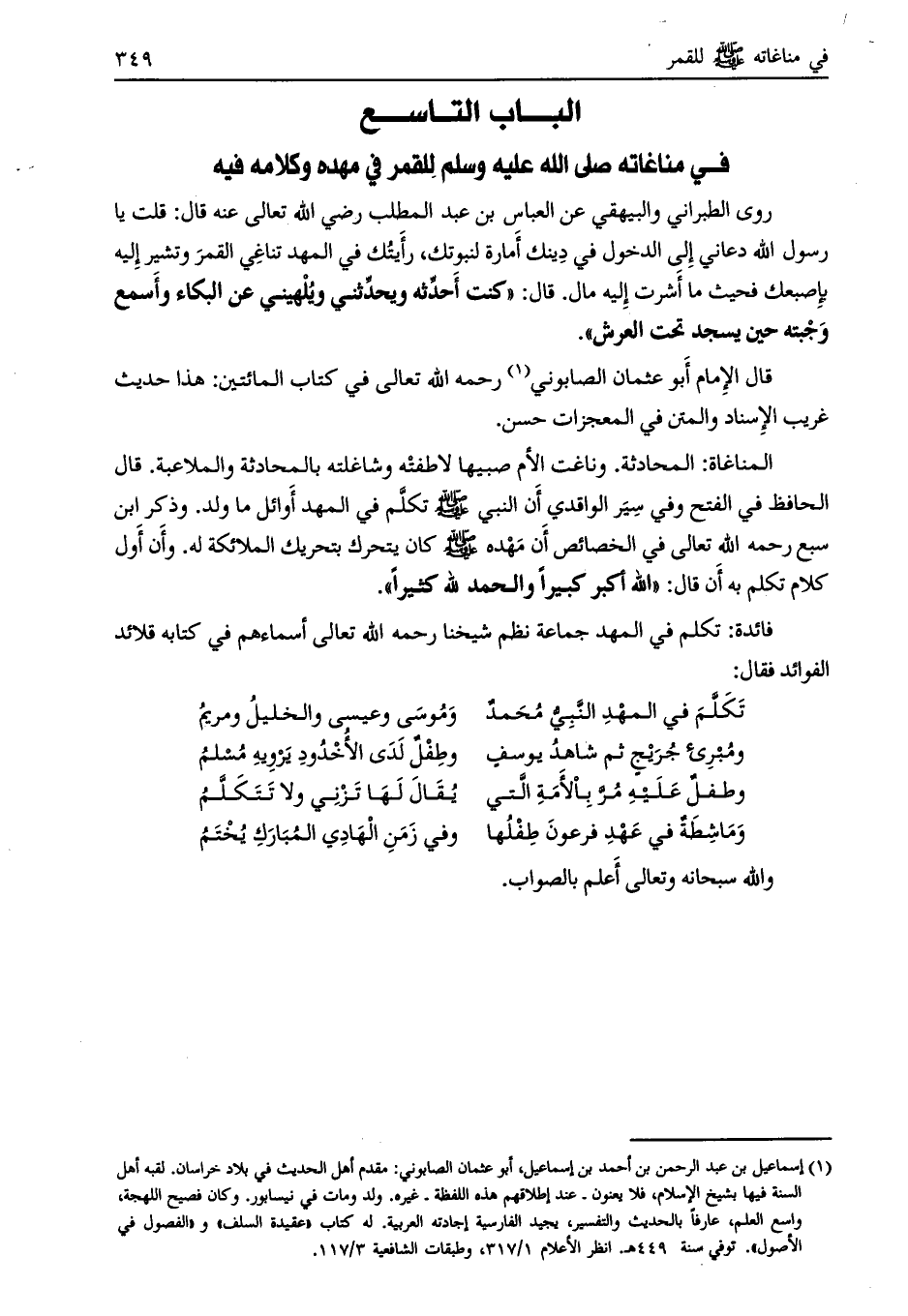 تكلّم في المهد النبيّ محمدٌ ... وموسى وعيسى والخليل ومريم