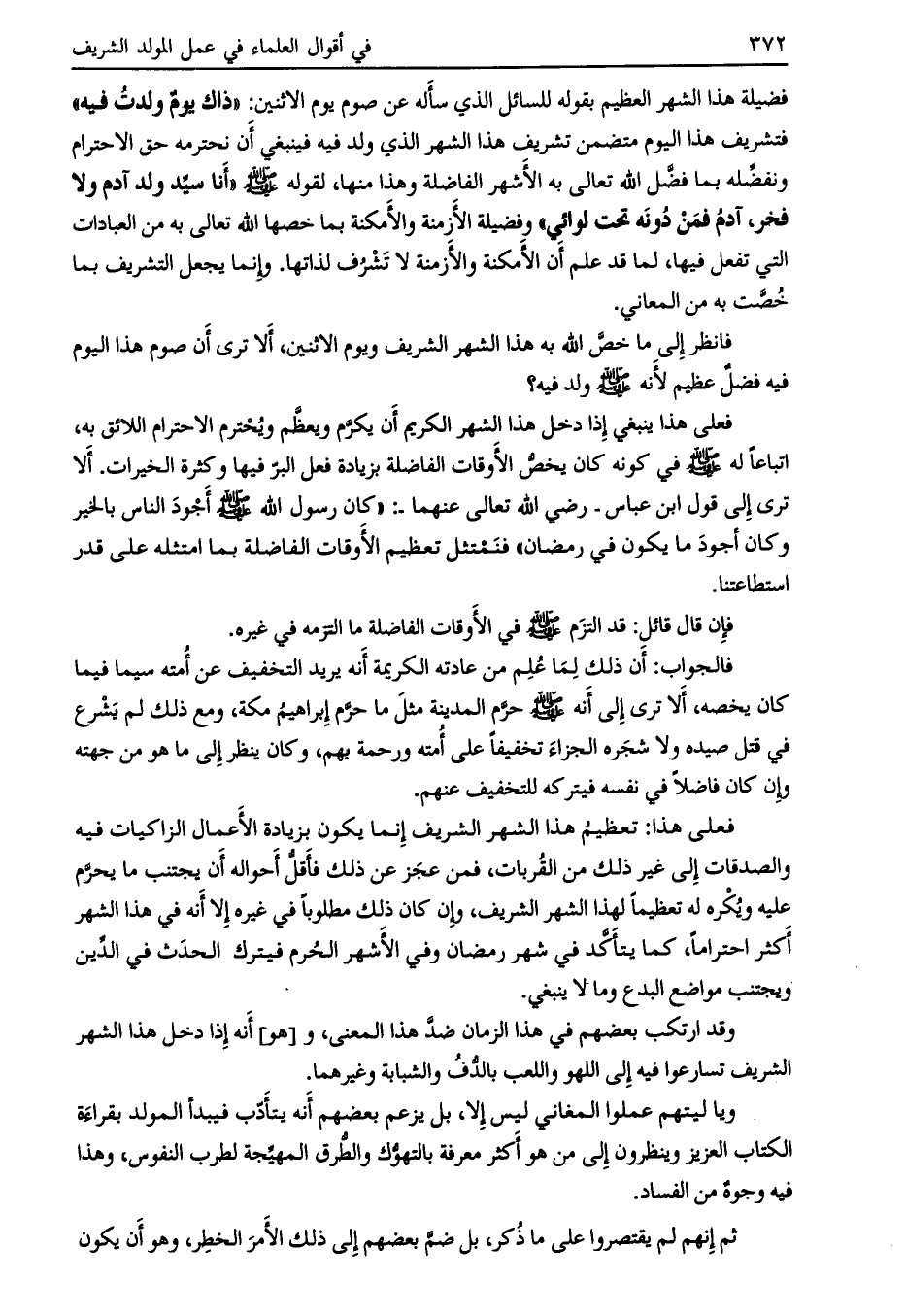 فانظر إلى ما خصّ الله به هذا الشهر الشريف ويوم الاثنين، ألا ترى أن صوم هذا اليوم فيه فضلٌ عظيم لأنه صلى الله عليه وسلم ولد فيه؟