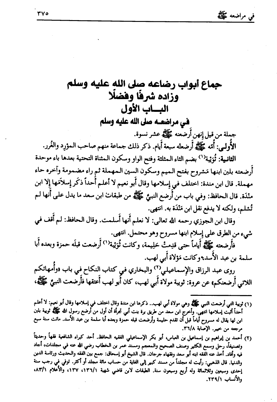 جماع أبواب رضاعه صلى الله عليه وسلم وزاده شرفا وفضلا