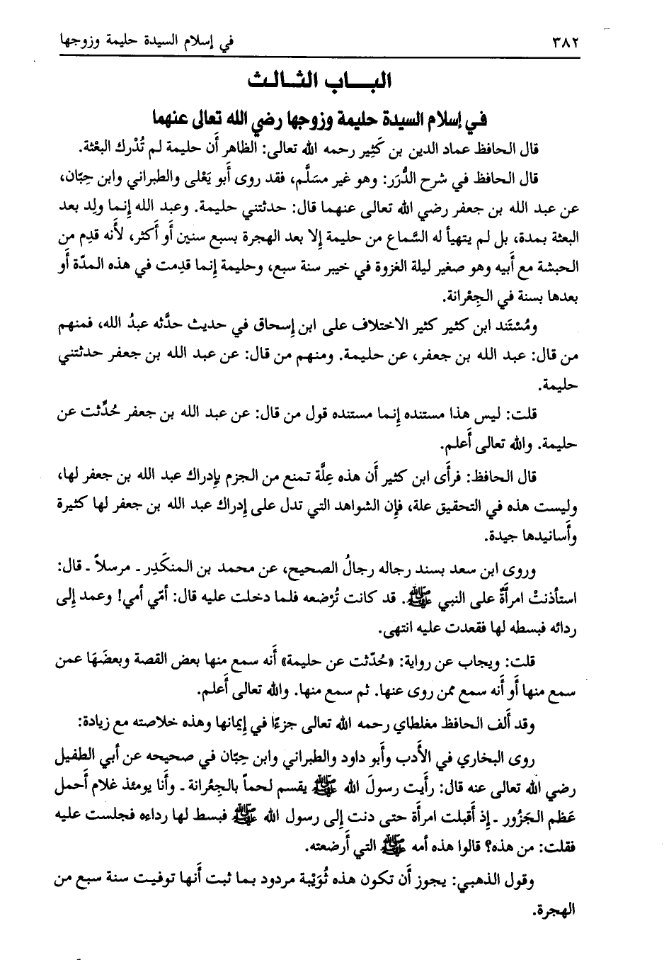 الباب الثالث في إسلام السيدة حليمة وزوجها رضي الله تعالى عنهما