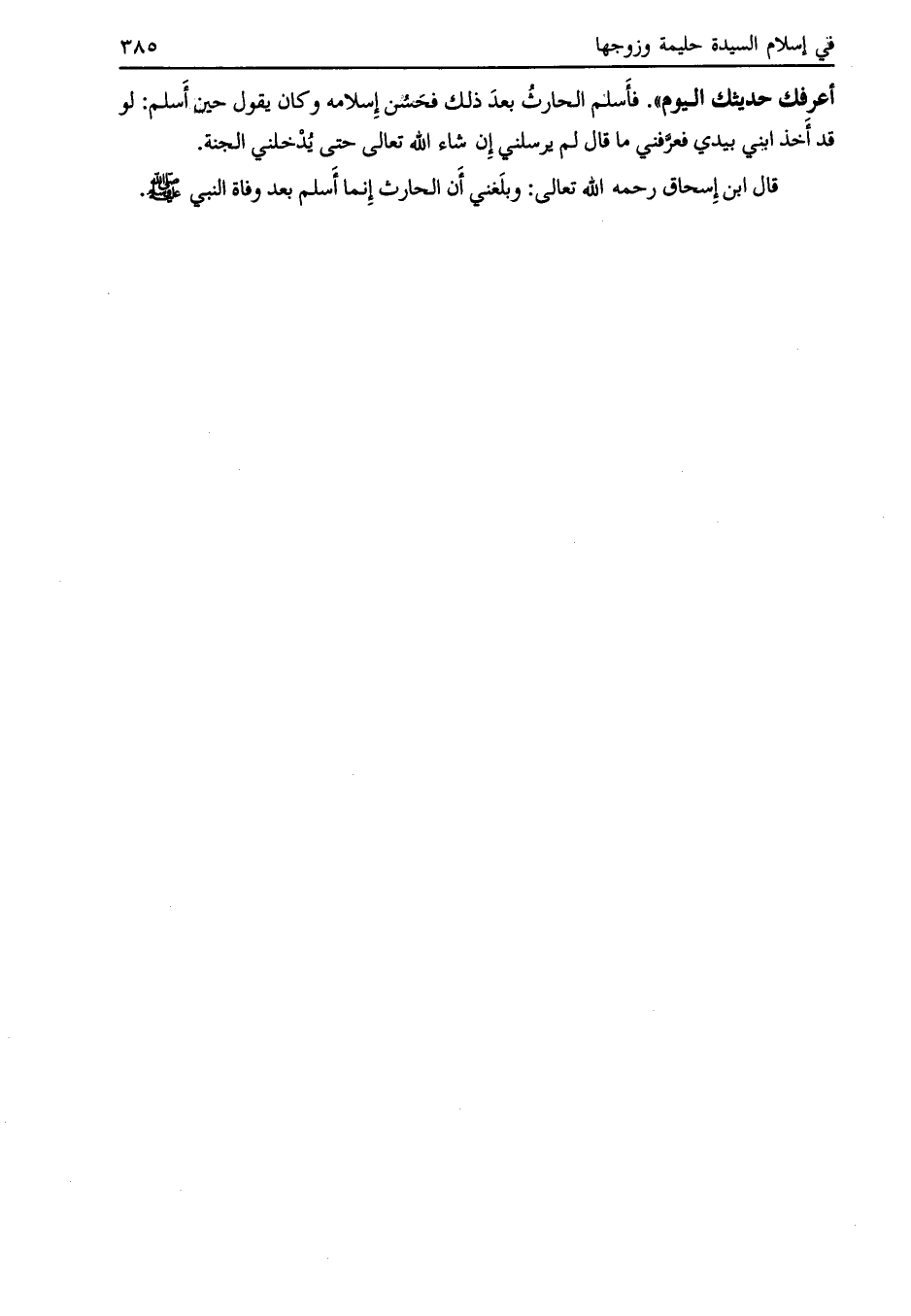 قال ابن إسحاق رحمه الله تعالى: وبلغني أن الحارث إنما أسلم بعد وفاة النبي صلى الله عليه وسلم.