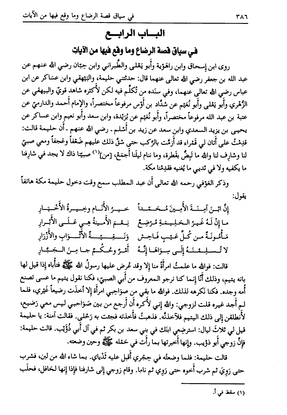 الباب الرابع في سياق قصة الرضاع وما وقع فيها من الآيات