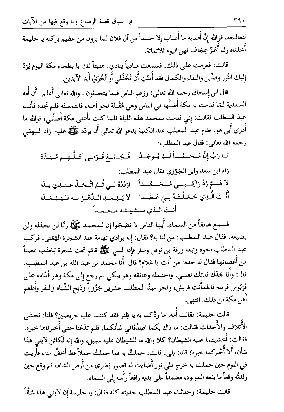 قالت حليمة: وحدثت عبد المطلب حديثه كله فقال: يا حليمة إن لابني هذا شأناً