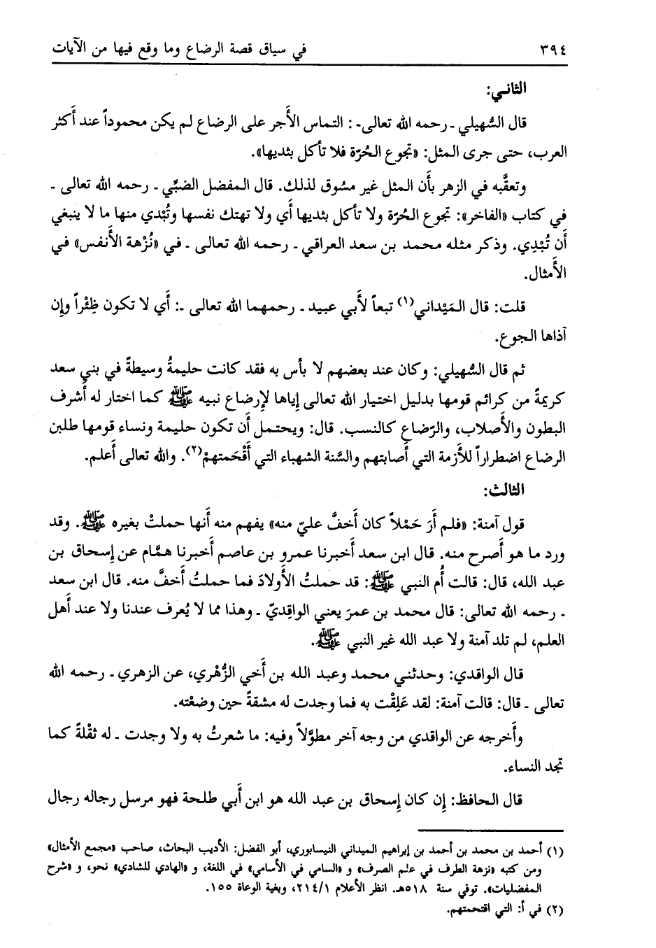 ثم قال السّهيلي: وكان عند بعضهم لا بأس به فقد كانت حليمة وسيطةً في بني سعد كريمة من كرائم قومها بدليل اختيار الله تعالى إياها لإرضاع نبيه صلى الله عليه وسلم كما اختار له أشرف البطون والأصلاب، والرّضاع كالنسب. قال: ويحتمل أن تكون حليمة ونساء قومها طلبن الرضاع اضطراراً للأزمة التي أصابتهم والسّنة الشهباء التي أقحمتهم [ (2) ] . والله تعالى أعلم.