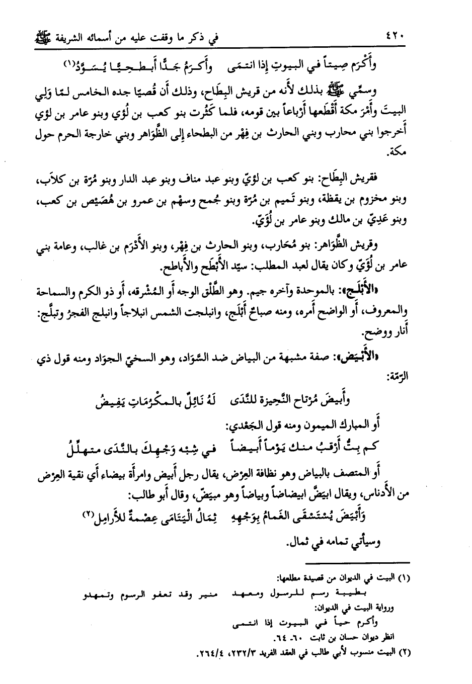[ (2) ] البيت منسوب لأبي طالب في العقد الفريد 3/ 232، 4/ 264.