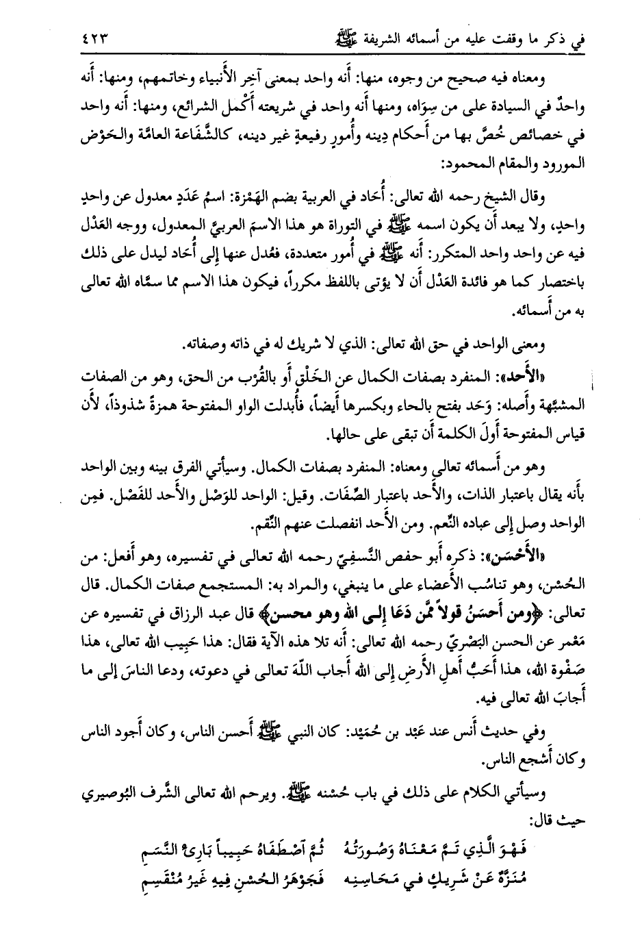 وسيأتي الكلام على ذلك في باب حسنه صلى الله عليه وسلم. ويرحم الله تعالى الشرف البوصيري حيث قال: