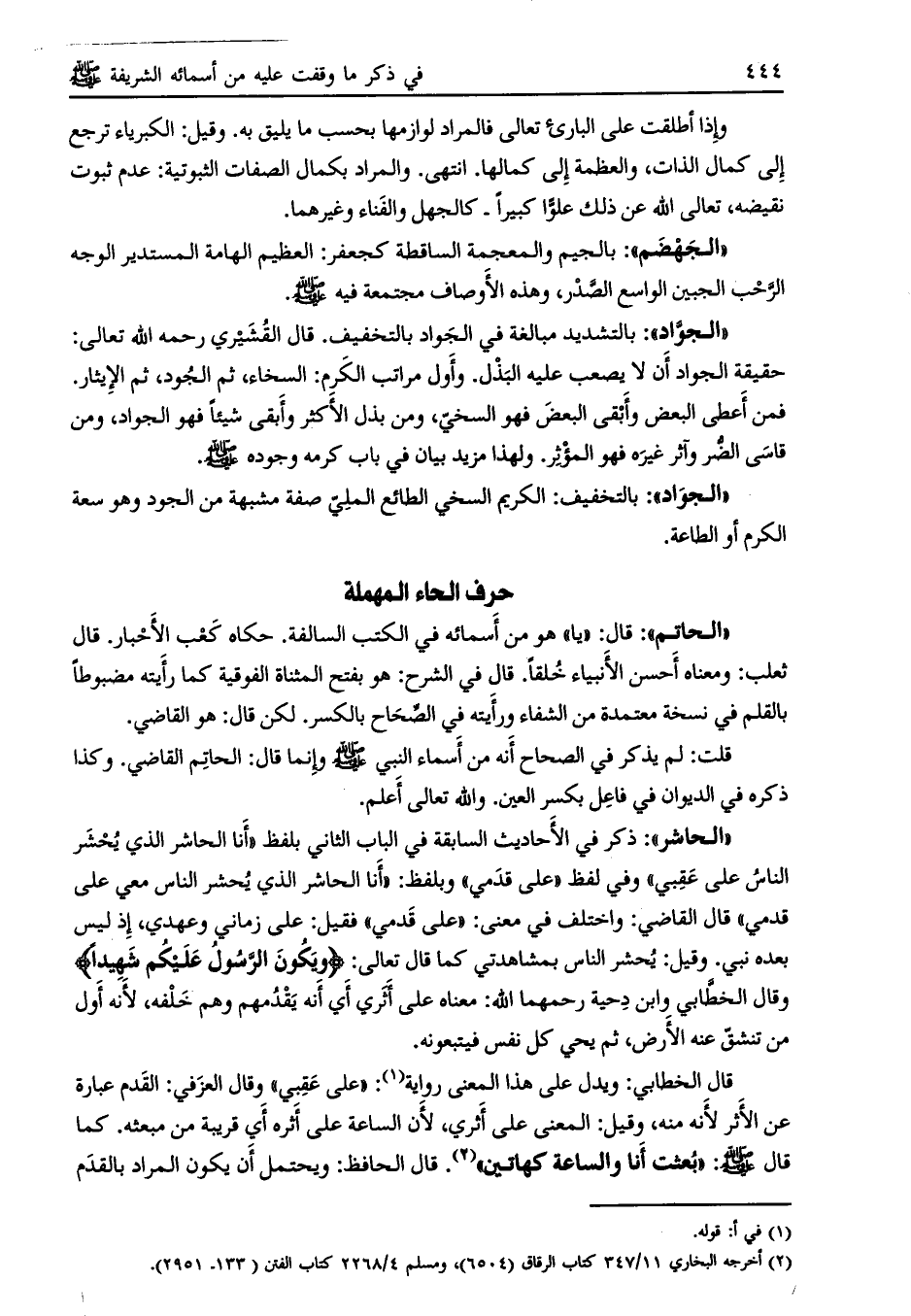 قلت: لم يذكر في الصحاح أنه من أسماء النبي صلى الله عليه وسلم وإنما قال: الحاتم القاضي. وكذا ذكره في الديوان في فاعل بكسر العين. والله تعالى أعلم