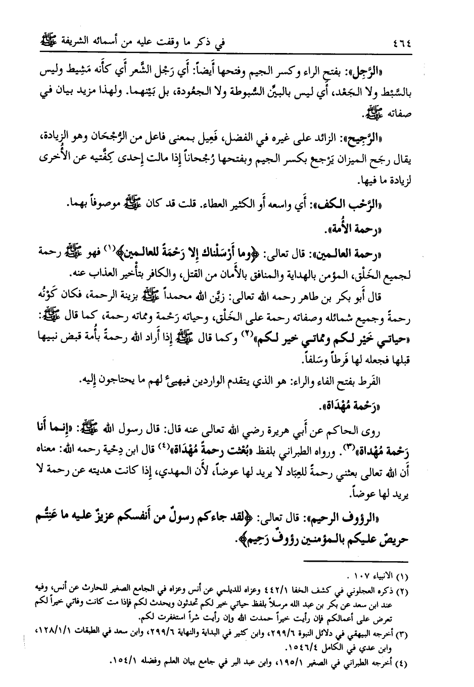 قال أبو بكر بن طاهر رحمه الله تعالى: زيّن الله محمدا صلى الله عليه وسلم بزينة الرحمة، فكان كونه رحمة وجميع شمائله وصفاته رحمة على الخلق، وحياته رحمة ومماته رحمة، كما