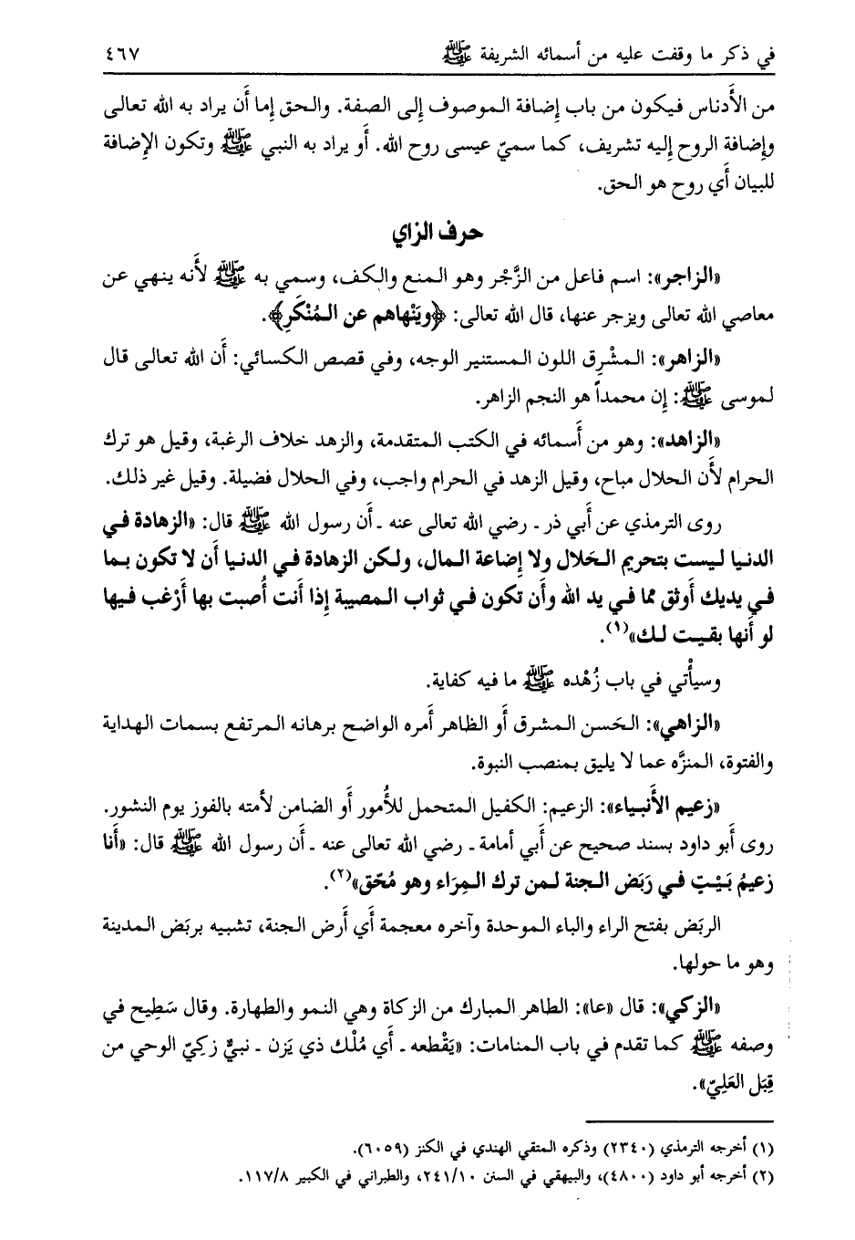 وهو من أسمائه في الكتب المتقدمة، والزهد خلاف الرغبة، وقيل هو ترك الحرام لأن الحلال مباح، وقيل الزهد في الحرام واجب، وفي الحلال فضيلة. وقيل غير ذلك.