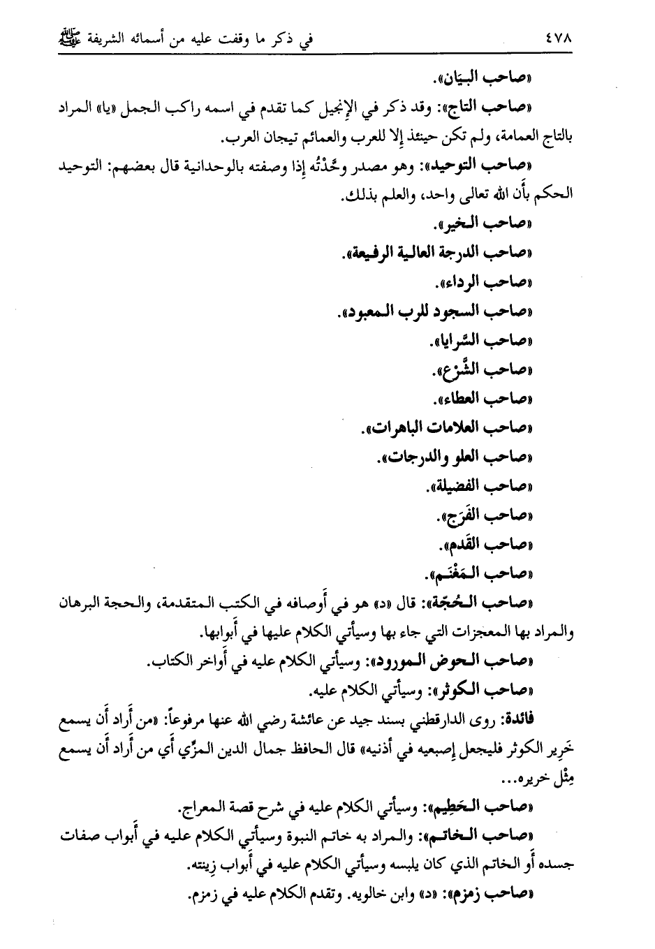 قال «د» هو في أوصافه في الكتب المتقدمة، والحجة البرهان والمراد بها المعجزات التي جاء بها وسيأتي الكلام عليها في أبوابها.