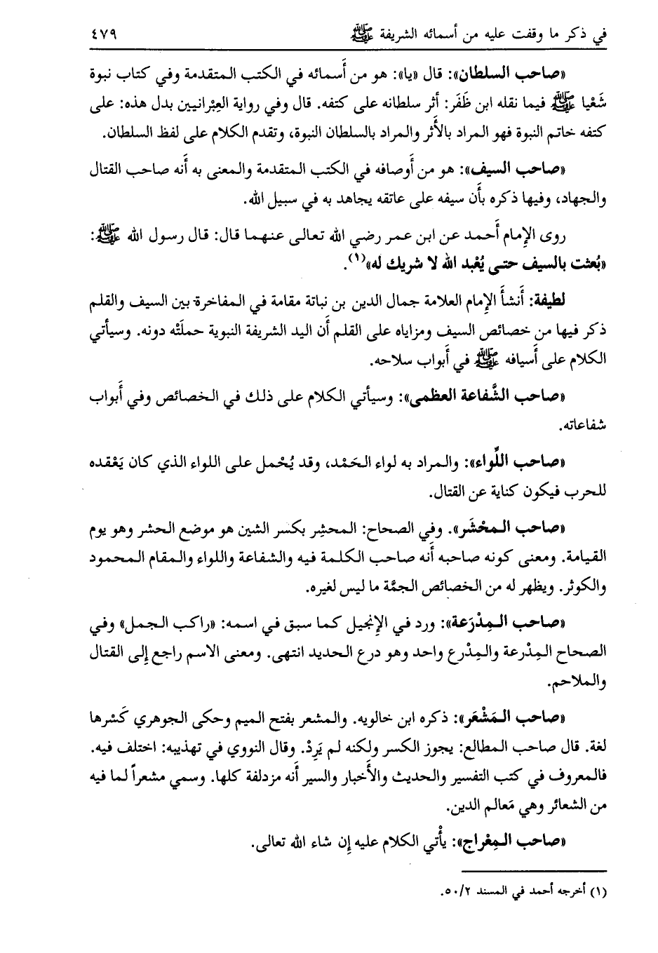 وسيأتي الكلام على ذلك في الخصائص وفي أبواب شفاعاته.