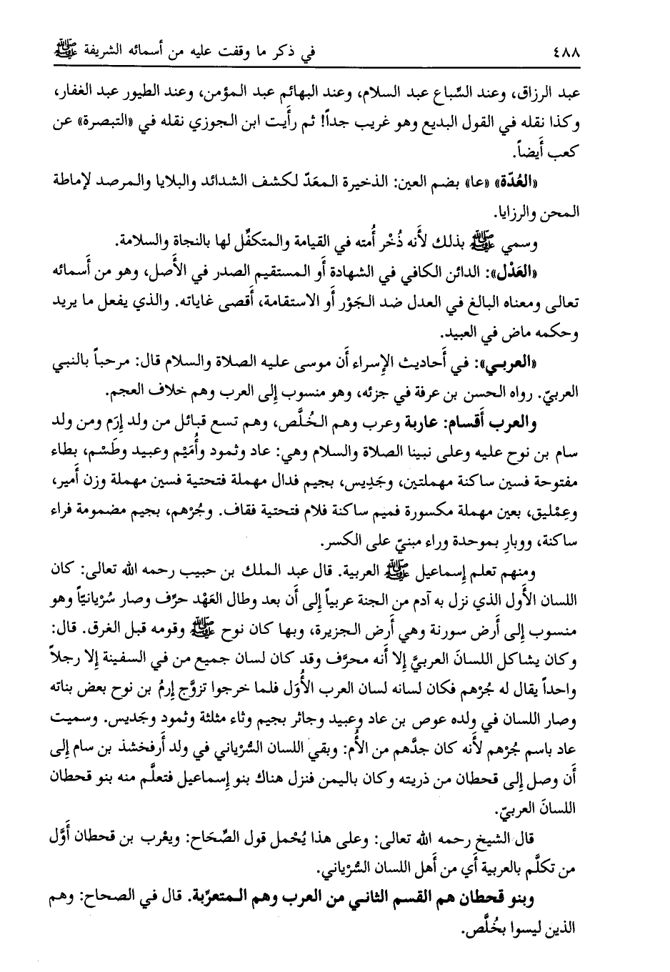 قال الشيخ رحمه الله تعالى: وعلى هذا يحمل قول الصّحاح: ويعرب بن قحطان أول من تكلم بالعربية أي من أهل اللسان السّرياني.