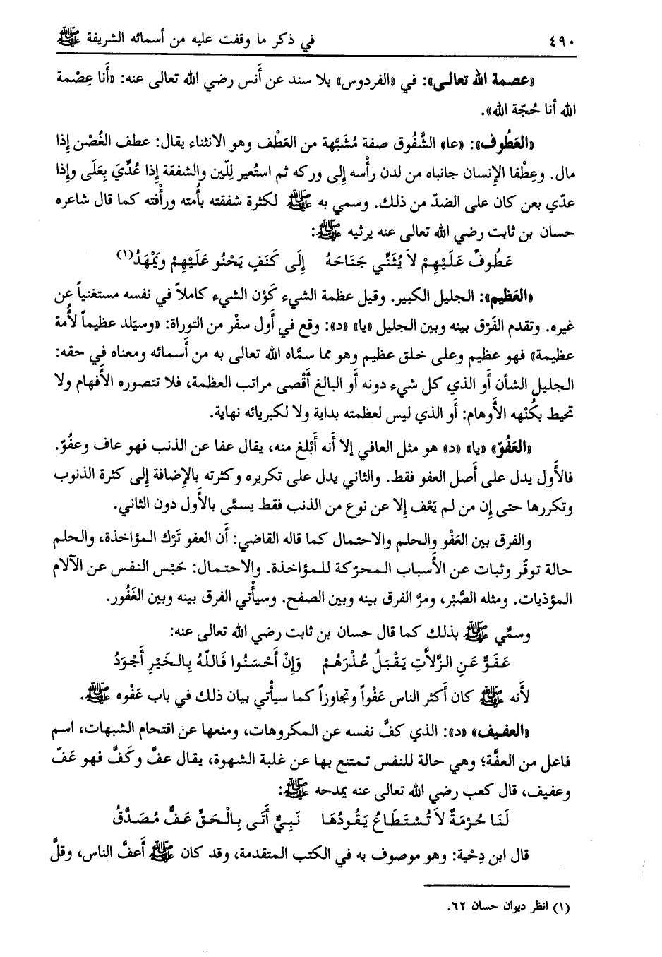 «عا» الشّفوق صفة مشبّهة من العطف وهو الانثناء يقال: عطف الغصن إذا مال. وعطفا الإنسان جانباه من لدن رأسه إلى وركه ثم استعير للّين والشفقة إذا عدّي بعلى وإذا عدّي بعن كان على الضدّ من ذلك. وسمي به صلى الله عليه وسلم لكثرة شفقته بأمته ورأفته كما قال شاعره حسان بن ثابت رضي الله تعالى عنه يرثيه صلّى الله عليه وسلم: