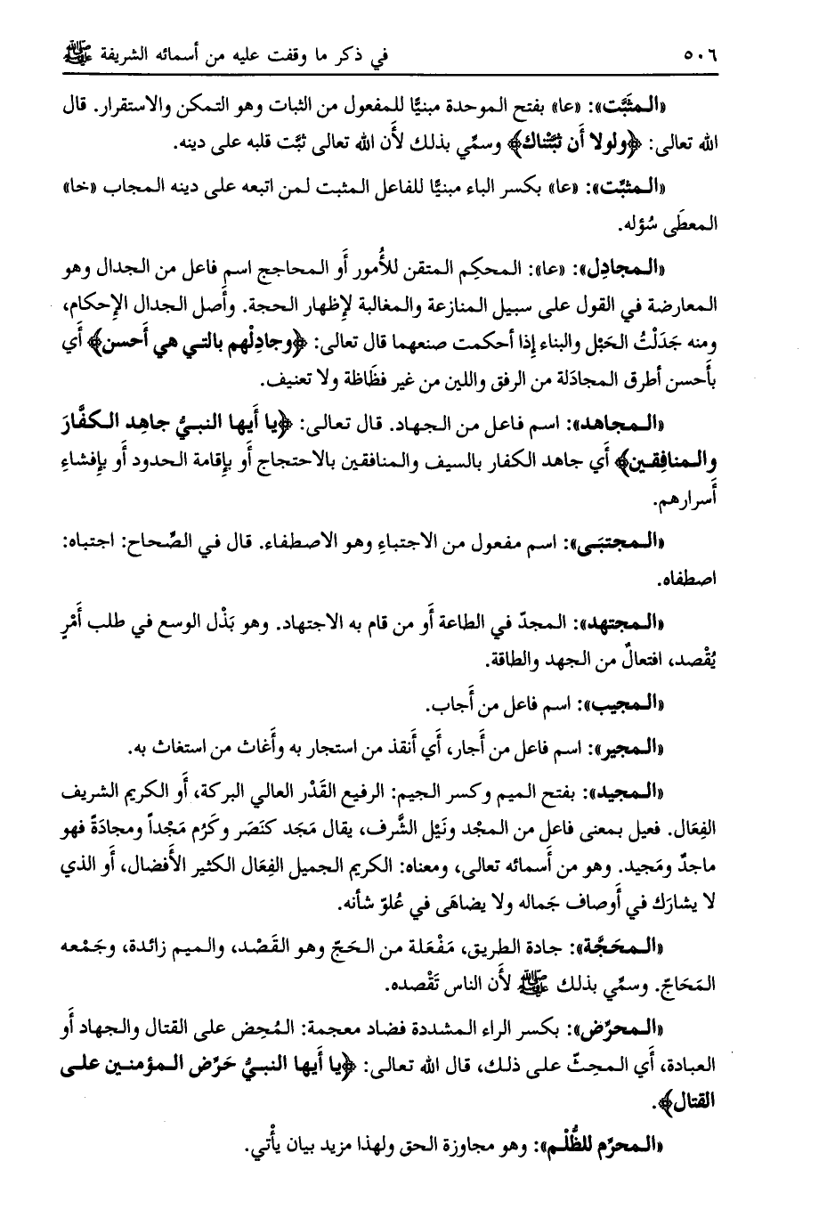 بفتح الميم وكسر الجيم: الرفيع القدر العالي البركة، أو الكريم الشريف الفعال. فعيل بمعنى فاعل من المجد ونيل الشّرف، يقال مجد كنصر وكرم مجداً ومجادةً فهو ماجدٌ ومجيد. وهو من أسمائه تعالى، ومعناه: الكريم الجميل الفعال الكثير الأفضال، أو الذي لا يشارك في أوصاف جماله ولا يضاهى في علوّ شأنه.