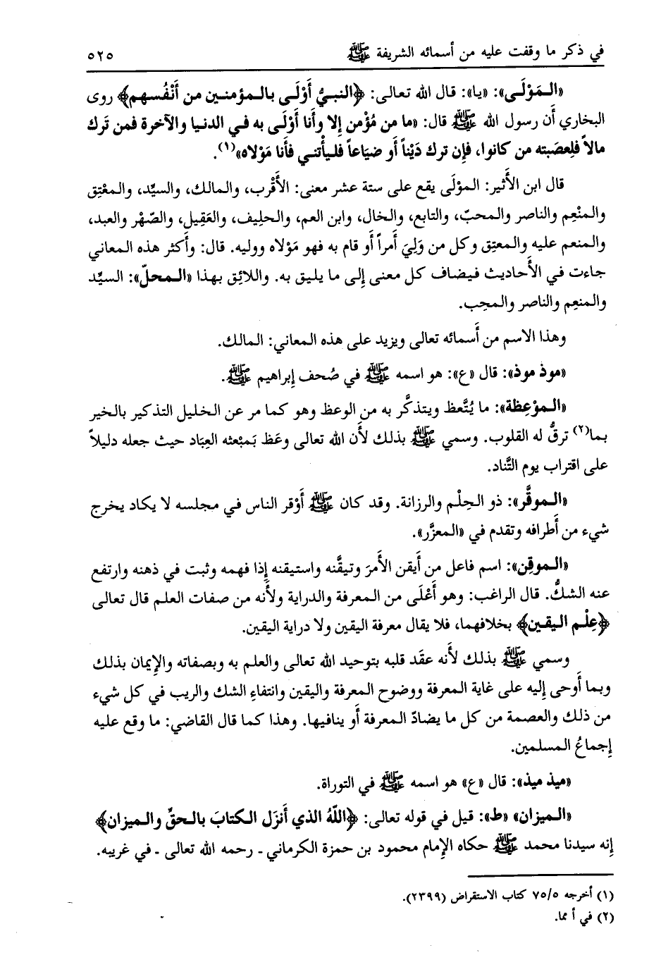 قال ابن الأثير: المولى يقع على ستة عشر معنى: الأقرب، والمالك، والسيّد، والمعتق والمنعم والناصر والمحب، والتابع، والخال، وابن العم، والحليف، والعقيل، والصّهر والعبد، والمنعم عليه والمعتق وكل من ولي أمراً أو قام به فهو مولاه ووليه. قال: وأكثر هذه المعاني جاءت في الأحاديث فيضاف كل معنى إلى ما يليق به. واللائق بهذا «المحلّ» : السيّد والمنعم والناصر والمحب.