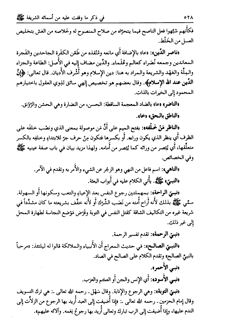 «عا» بالإضافة أي مانعه ومنقذه من طعن الكفرة الجاحدين والفجرة المعاندين وجمعه نصراء كعالم وعلماء. والدّين مضاف إليه في الأصل: الطاعة والجزاء والملّة والعهد والشريعة والمراد به هنا: دين الإسلام وهو أشرف الأديان. قال تعالى: إِنَّ الدِّينَ عِنْدَ اللَّهِ الْإِسْلامُ. وقال بعضهم هو تخصيص إلهي سائق لذوي العقول باختيارهم المحمود إلى الخيرات بالذات.