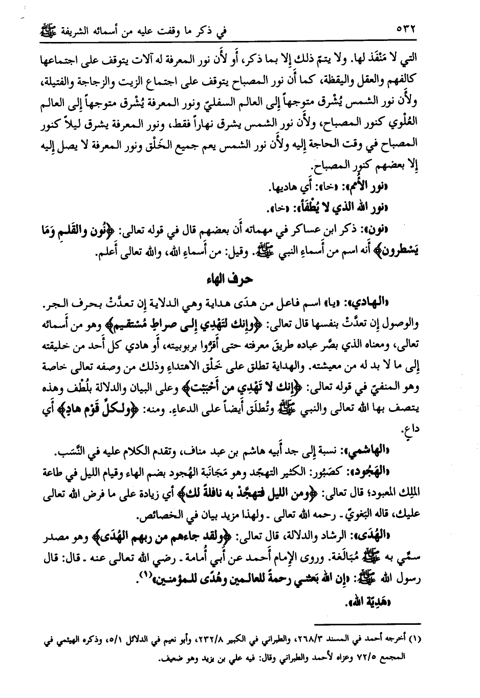 الرشاد والدلالة، قال تعالى: وَلَقَدْ جاءَهُمْ مِنْ رَبِّهِمُ الْهُدى وهو مصدر سمّي به صلى الله عليه وسلم مبالغة.