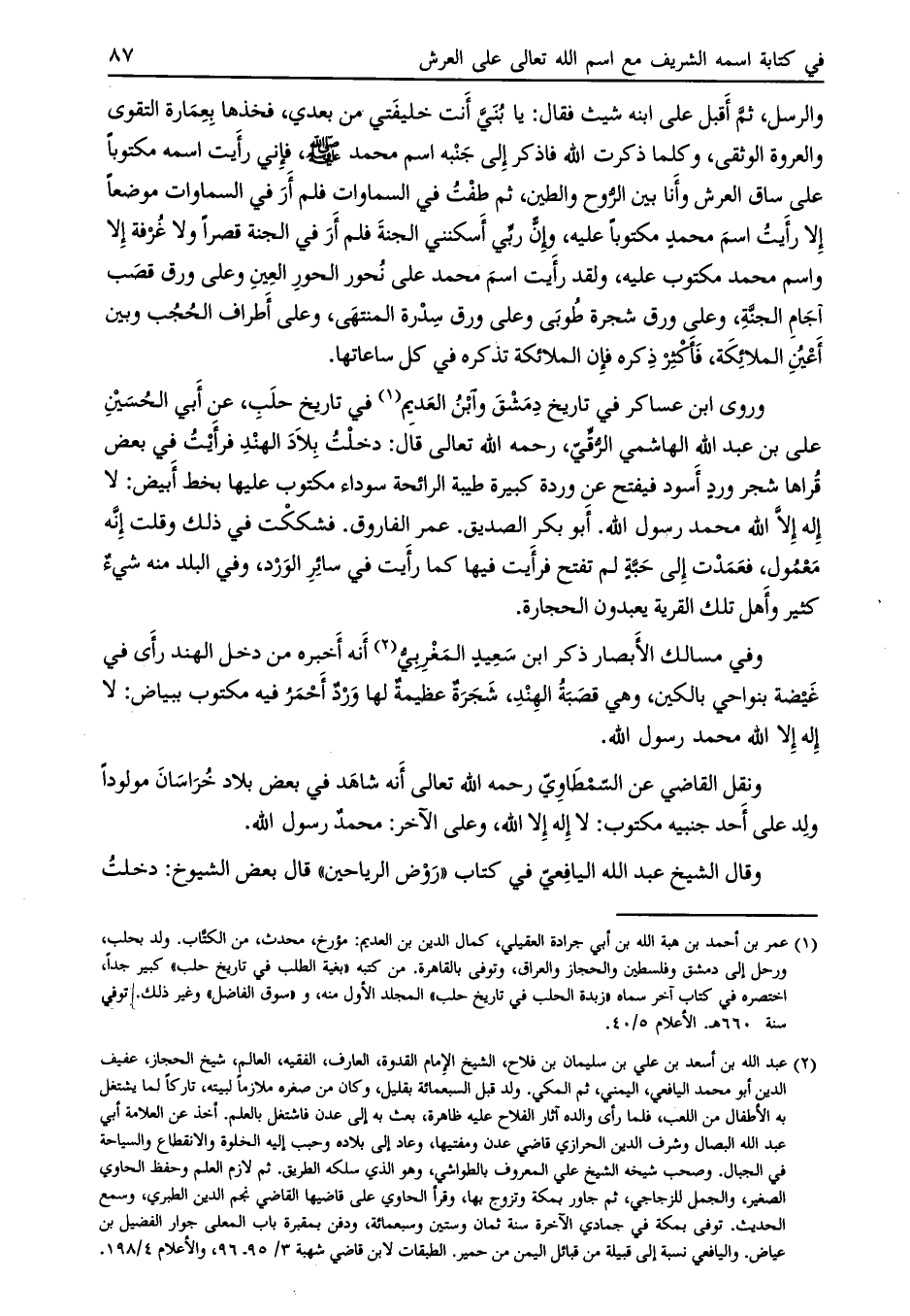 وقال الشيخ عبد الله اليافعي في كتاب «روض الرياحين» قال بعض الشيوخ: دخلت